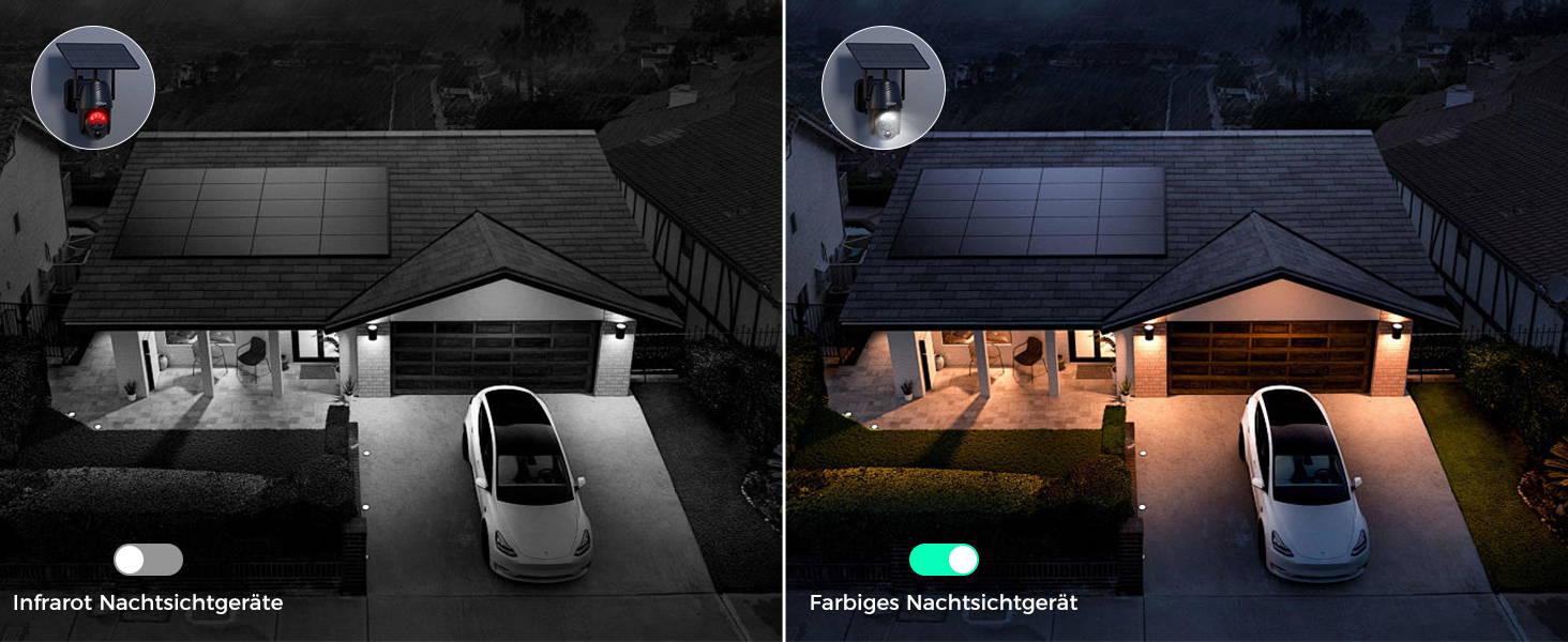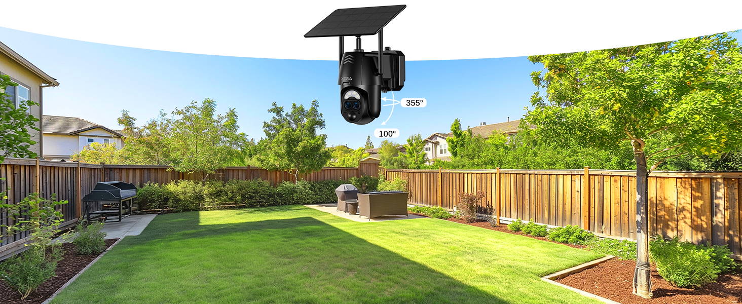 Die kabellose Überwachungskamera Solar für den Außenbereich bietet 2K (2048*1536) HD-Bilder und Videos, die tagsüber und nachts klarer sind als bei anderen 1080P-Sicherheitskameras. Die eine Rotation von 355° horizontal und 100° vertikal unterstützen. So bietet sie Ihnen einen vollständigen 360°-Schutz mit nur wenigen toten Winkeln.