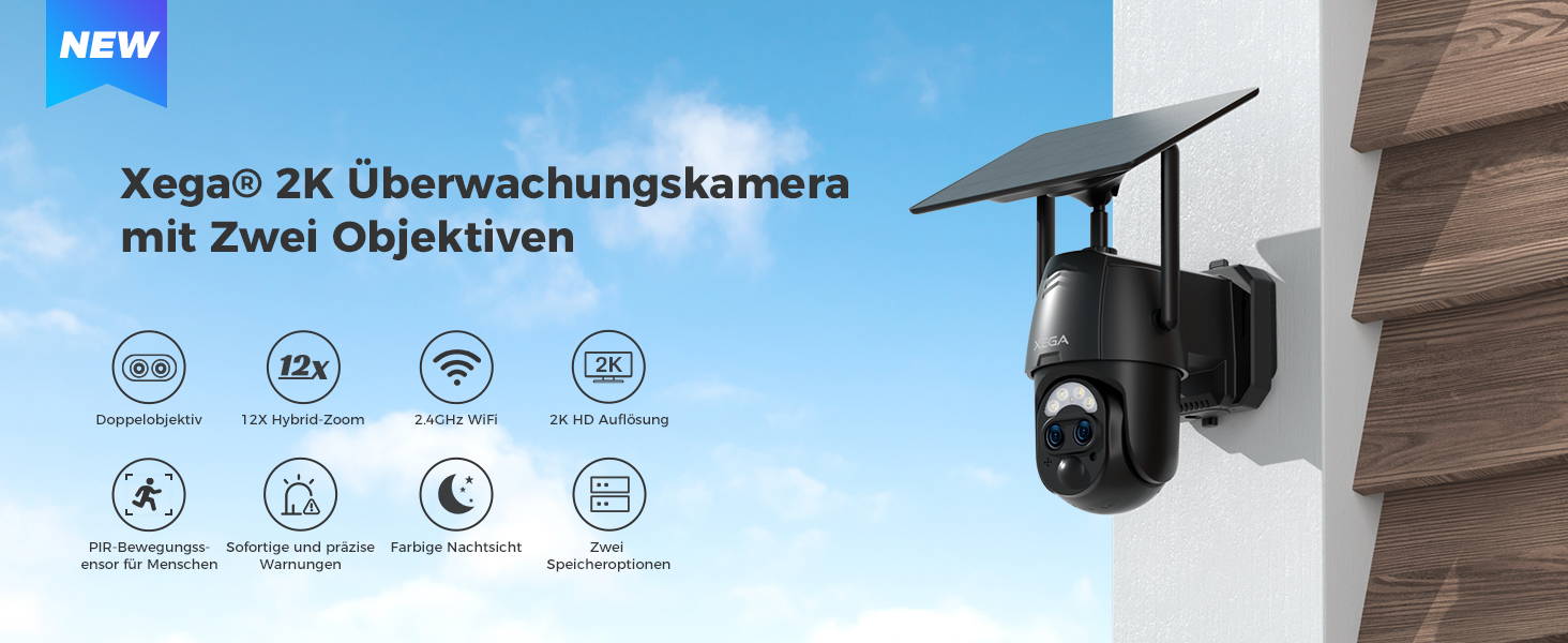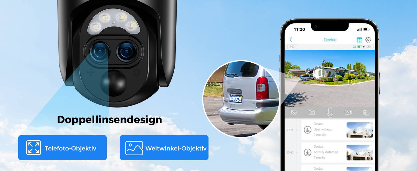 2K Überwachungskamera Solar mit Dual-Objektiv