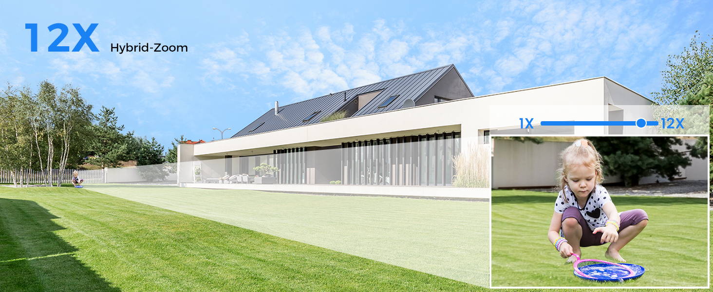 12-facher Hybrid-Zoom, keine blinden Flecken